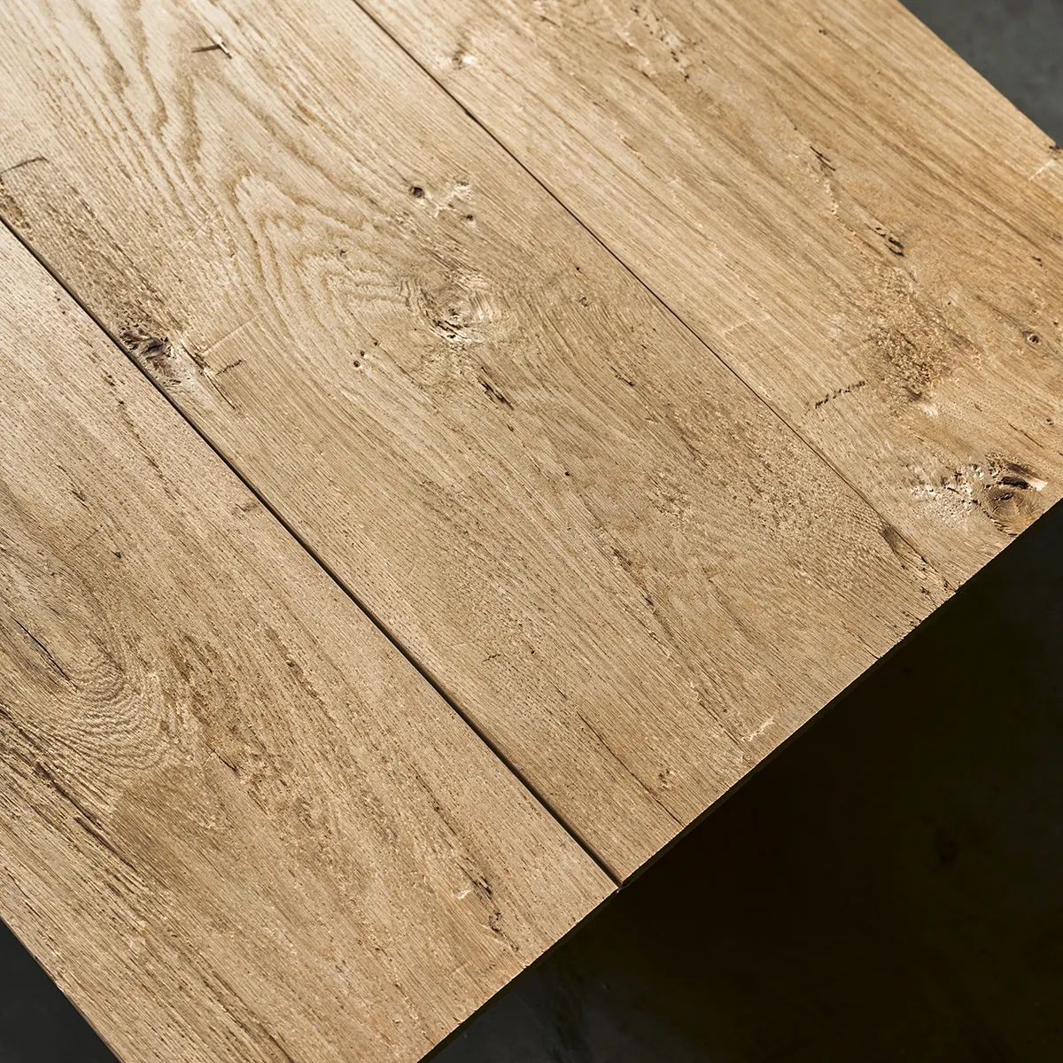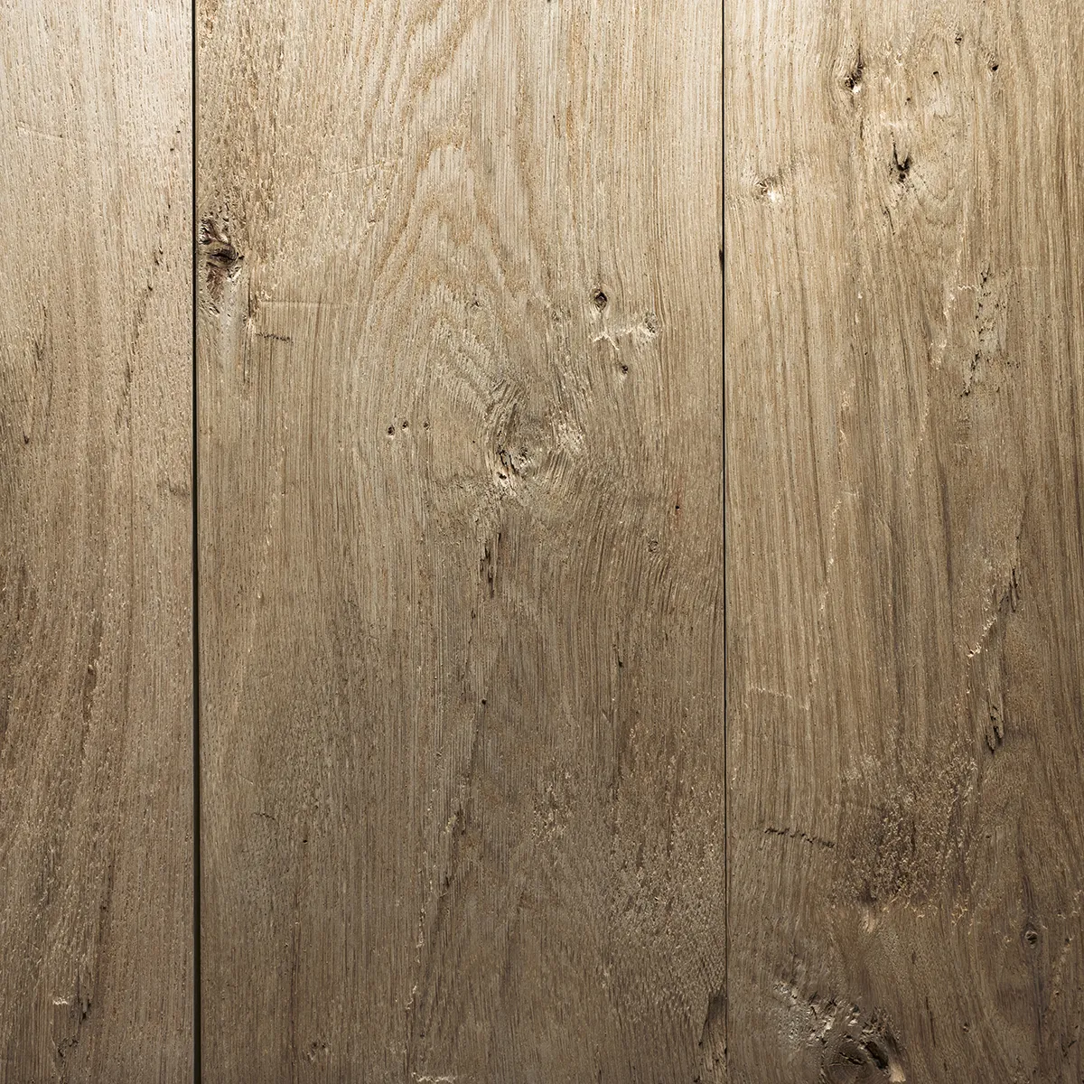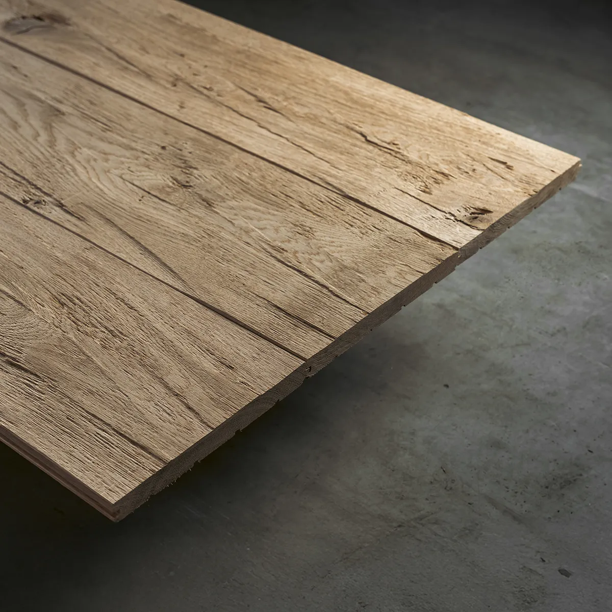 Die Wandverkleidung aus massiver Eiche wurde handwerklich bearbeitet: Durch das sogenannte „Hacken“ entsteht eine markante, strukturierte Oberfläche, die den rustikalen Charme alter Bauernhäuser aufgreift und bieten daher eine stimmige Wahl für Sanierungen im Altbau. Auch im Außenbereich bildet das Holz im Laufe der Zeit eine natürliche silbergraue Patina, die sich natürlich in die Umgebungen einfügt – in Gärten, Höfen und Fassaden.